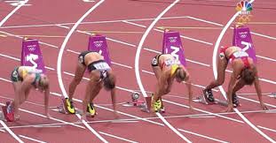 Aquí atletas en posición de “en sus marcas” o “a sus